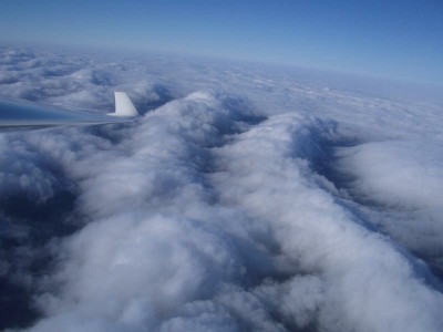 Wenn wir Segelflieger uns Wellen in der Atmophäre zu erklären versuchen, dann nehmen wir mit an Sicherheit grenzender Wahrscheinlichkeit ein hydrostatisches Denkmodell zu Hilfe. Funktioniert ein solches doch sehr gut zur Erklärung unseres gemeinhin wichtigsten Energielieferanten, der Thermik. Diese entwickelt sich bekanntermaßen bei labilen Schichtungsverhältnissen: ein sich beim Aufstieg durch Ausdehnung abkühlendes Luftpaket bleibt bei labiler Schichtung immer wärmer als die Umgebungsluft. Dies wird verursacht durch die wetterlagenbedingt schnellere Temperaturabnahme in der umgebenden Luftmasse mit zunehmender Höhe. Das ist bewährtes, allgemein verbreitetes Lehrbuchwissen, auf das ich nicht im Detail eingehen werde. Auch dass dieser Prozess ebenfalls in umgekehrter Richtung abläuft ist klar, wenn auch ungewohnter zu denken.